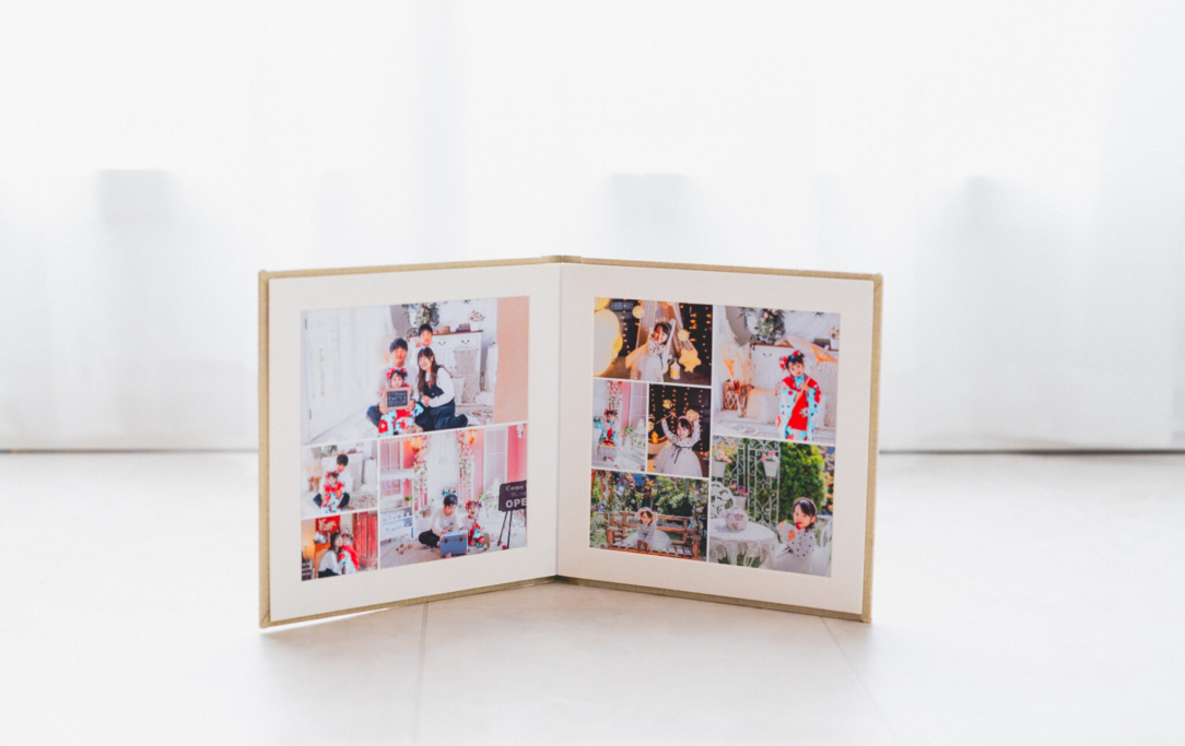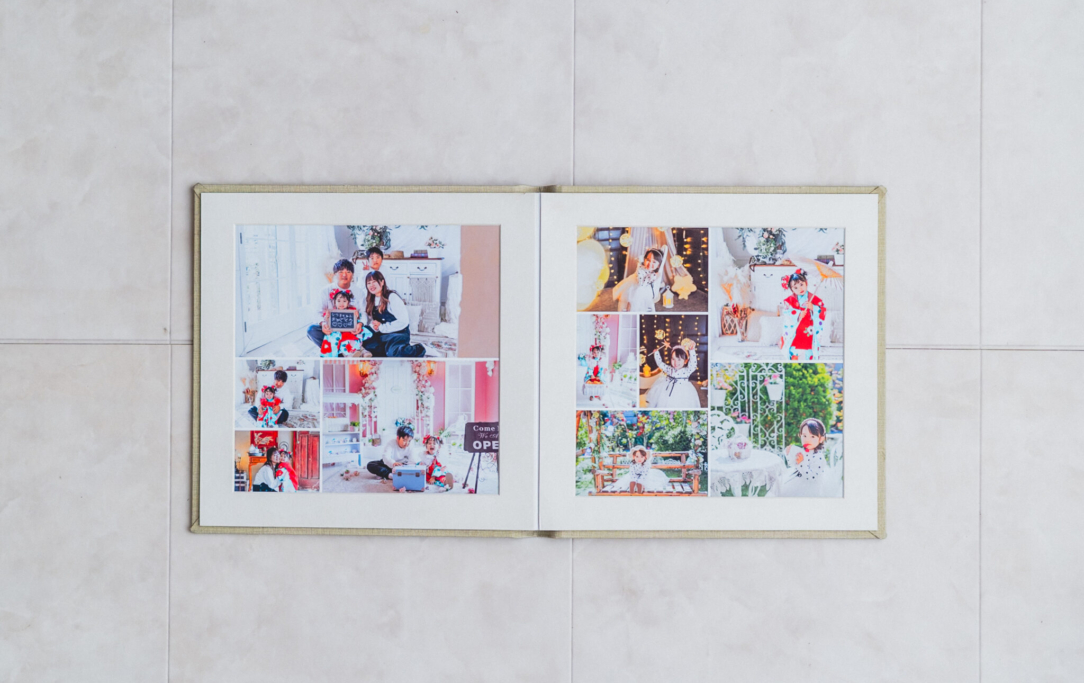 アルバムの表紙、表表紙に写真を入れてアクリルでカバーするため、鮮明度と完成度が高いアルバムです。(25.4×25.4cm)